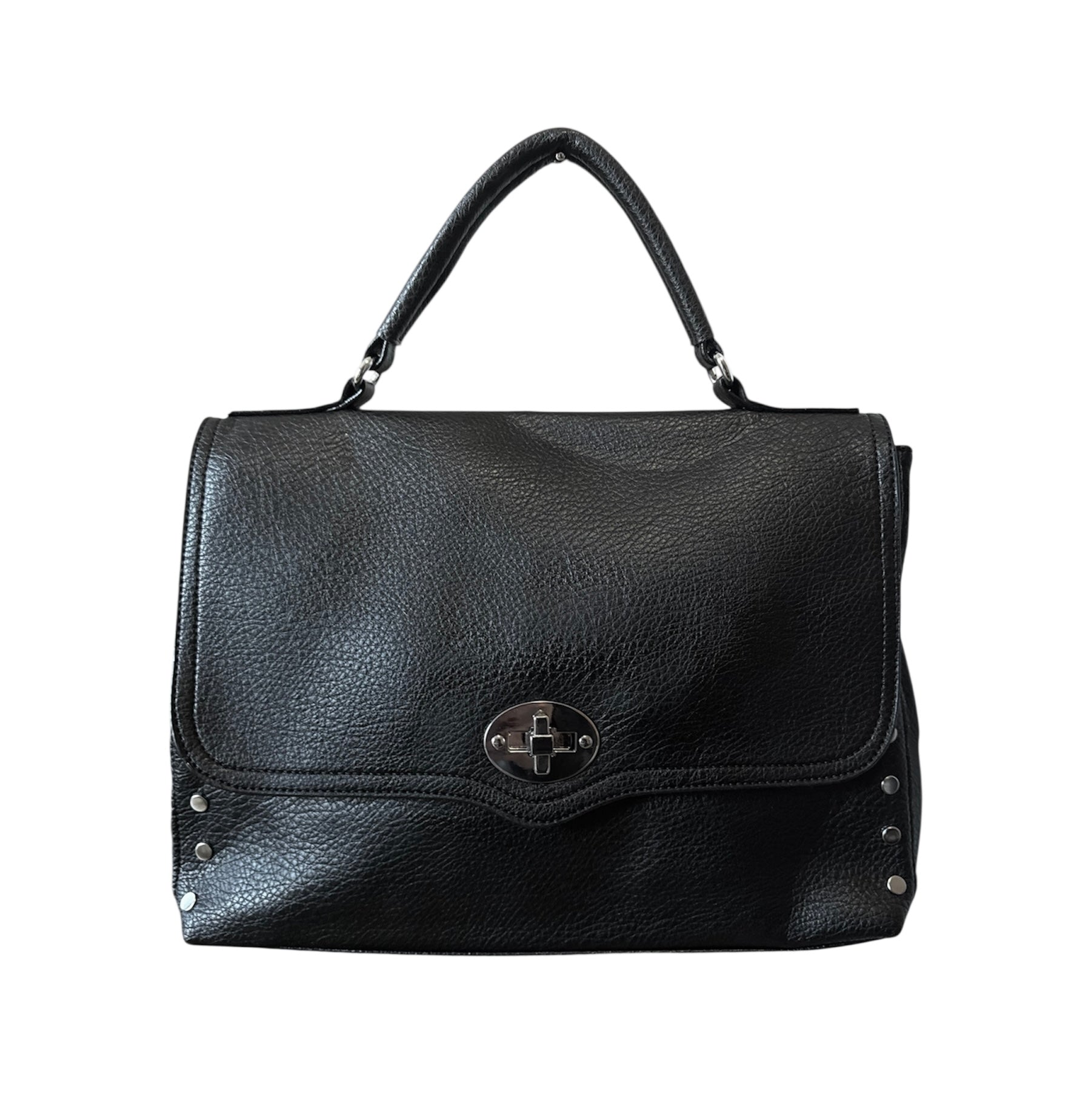 Borsa postina in ecopelle martellata con dettagli argento e tracolla regolabile