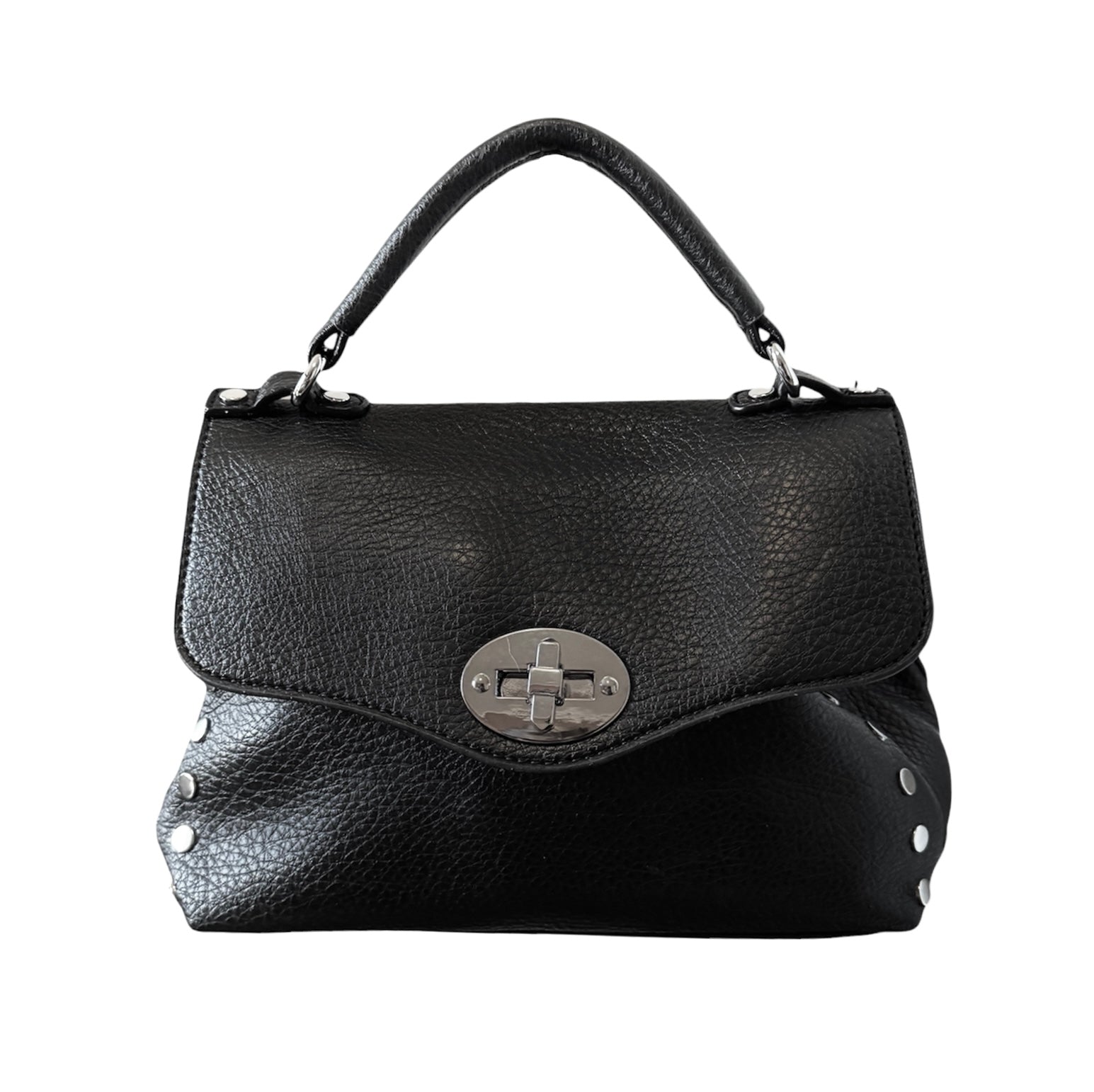 Borsa postina in ecopelle con tracolla regolabile e dettagli silver
