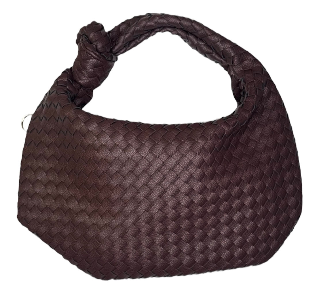 Elegante e versatile, questa borsa a spalla con lavorazione intrecciata è il dettaglio perfetto per ogni outfit. Il manico con nodo dona un tocco originale e sofisticato, mentre la texture effetto pelle intrecciata richiama uno stile artigianale e di tendenza.