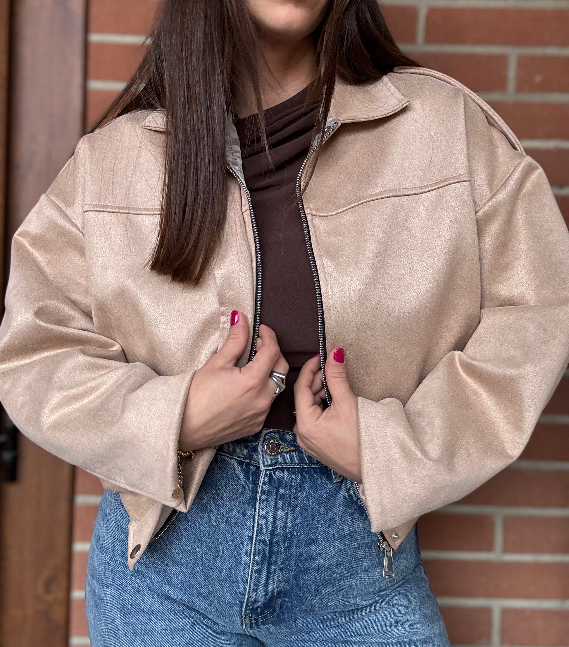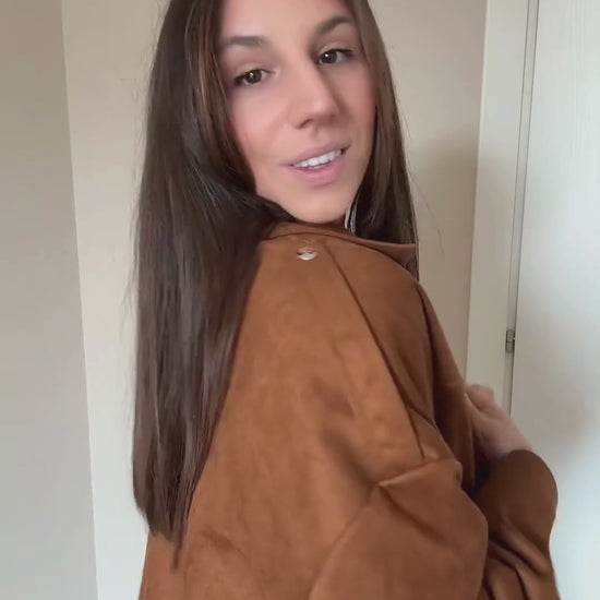 Giacca oversize in suede morbido con doppia chiusura zip e bottoni per uno stile versatile e contemporaneo. Taglia unica con vestibilità comoda che si adatta perfettamente a ogni silhouette. Il pezzo essenziale per look rilassati e sofisticati.