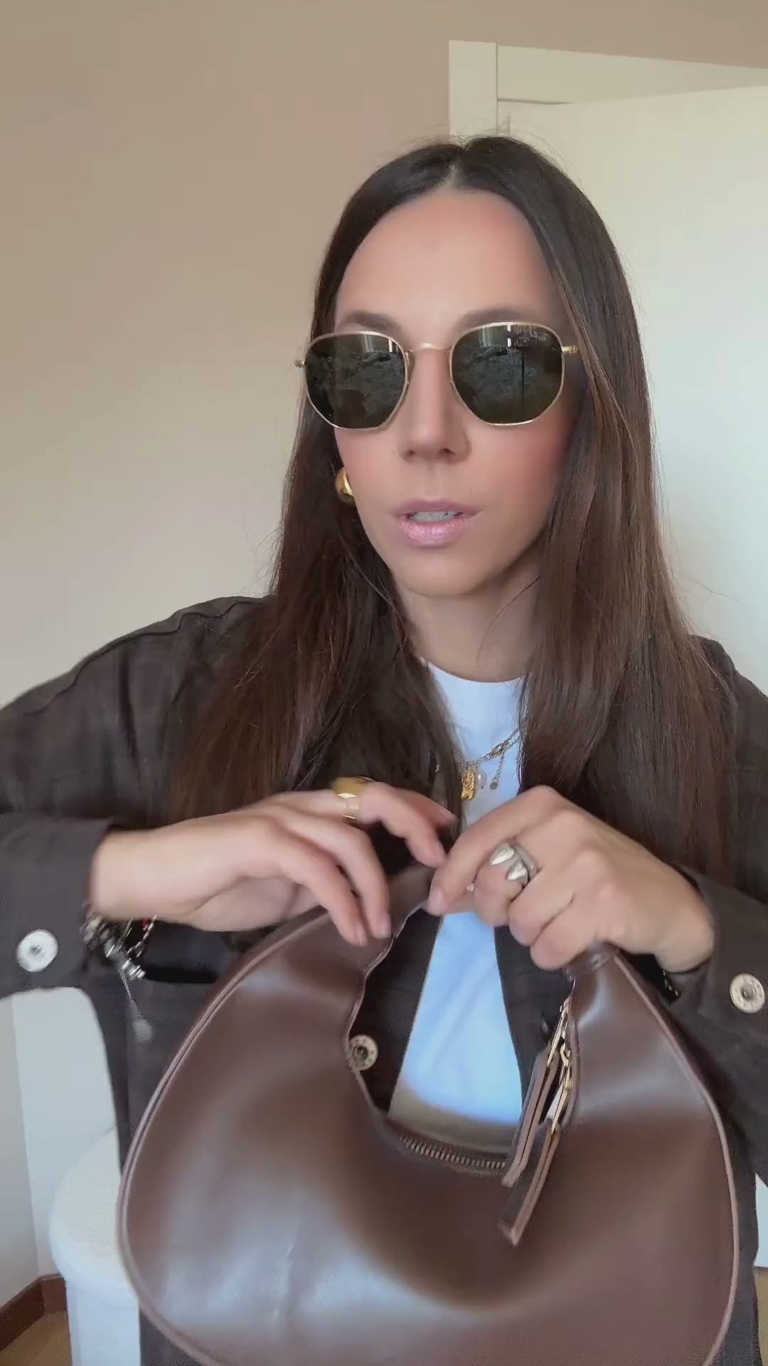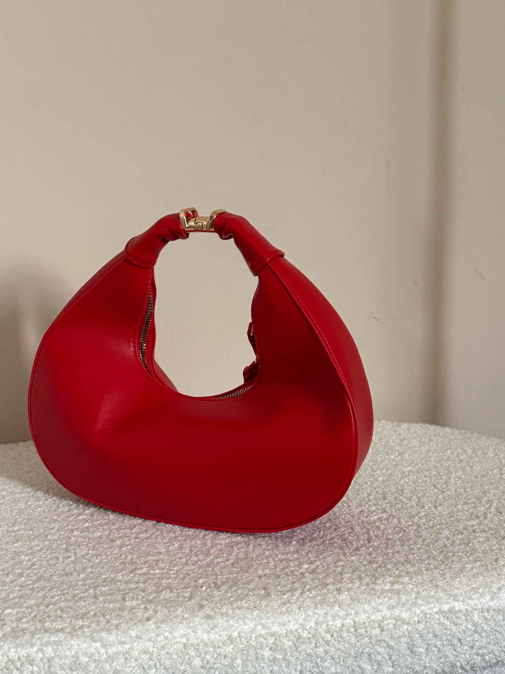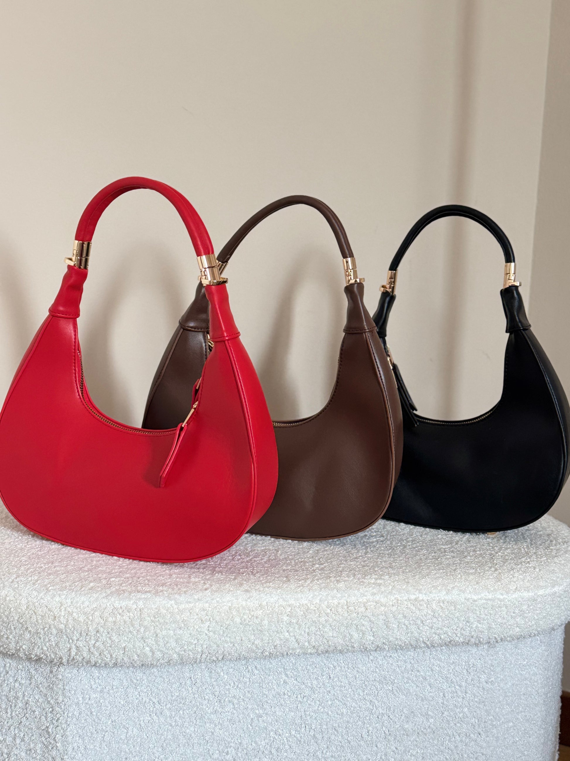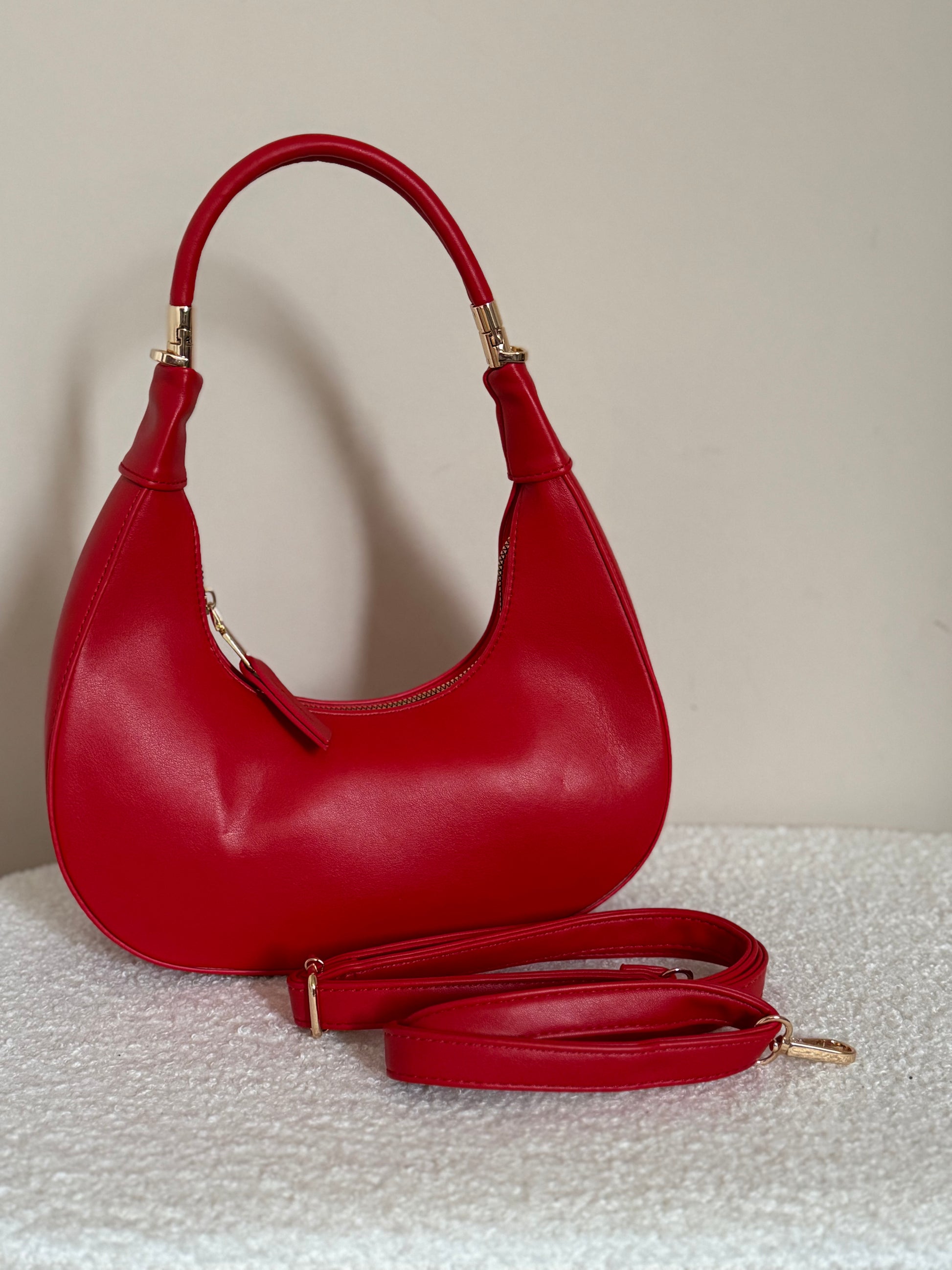 Borsa Helena, comoda borsa a mezza luna con chiusura con zip mianico rimovibile per trasformarla in una borsa da mano. Con tracolla regalbile in ecopelle.