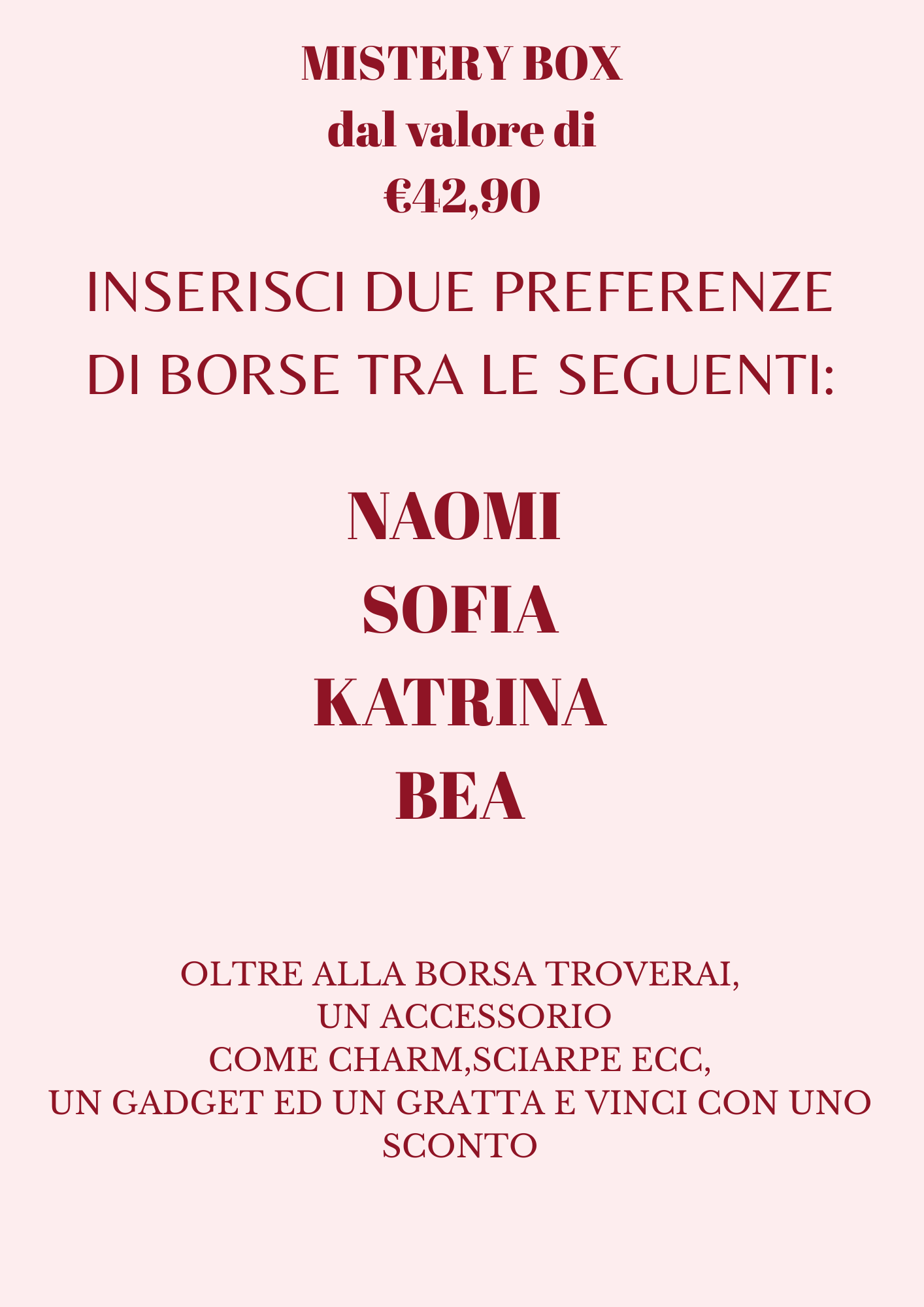 un gratta e vinci con uno sconto ed infine un gadget con tantissimi articoli