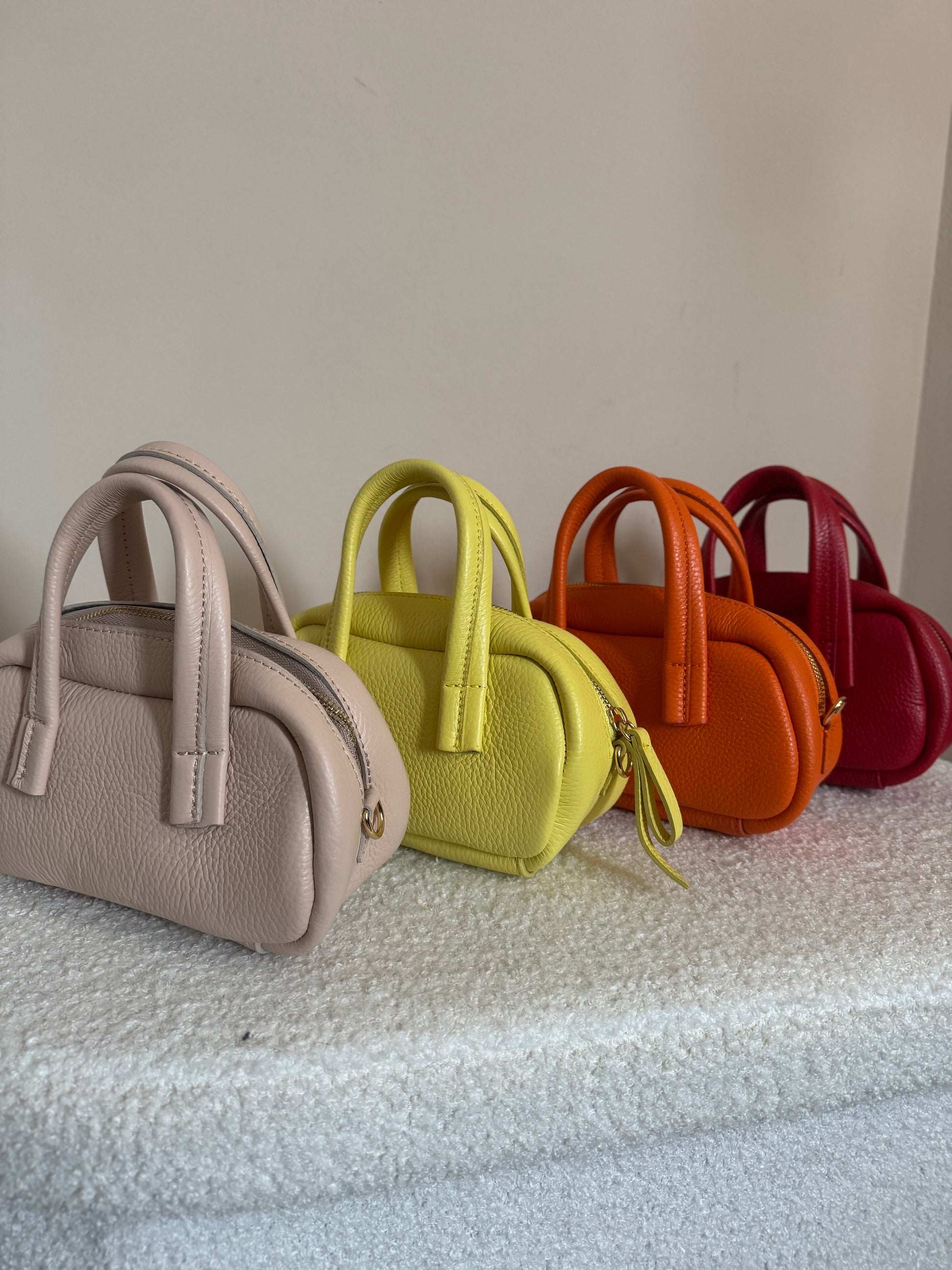 Borsa Milù in vera pelle, disegnata per la stagione calda con dettagli raffinati. Chiusura con zip sicura e tracolla regolabile per versatilità di utilizzo. Disponibile in una selezione di tonalità pastello che catturano l'essenza della primavera-estate. Realizzata con pelle autentica per durabilità e eleganza senza tempo.