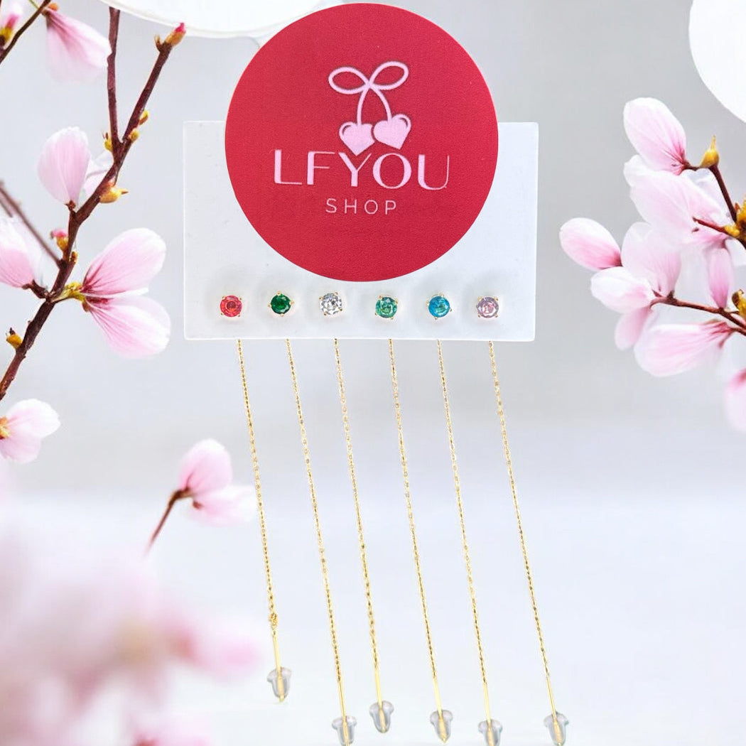 Orecchino saliscendi acciaio inossidabile con zirconi colorati, venduto singolo
